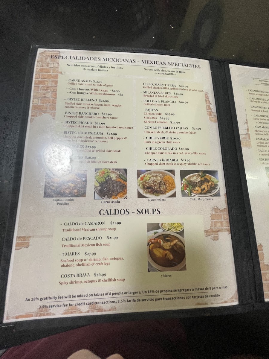Combo Pueblito: Sizzling chicken, steak, and shrimp fajitas. Served with choice of corn or flour tortillas.